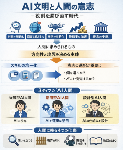 AI文明論⑥で提唱された3タイプ。以下の表で今すぐ診断を。