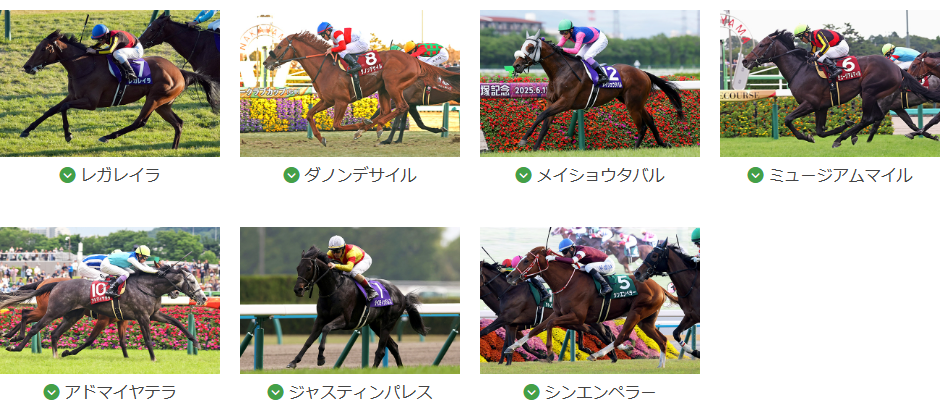 | レガレイラ(牝4) | C.ルメール | ’24有馬記念1着、’25エリザベス女王杯1着 | 中山2500m適性抜群、牝馬最強格 |
