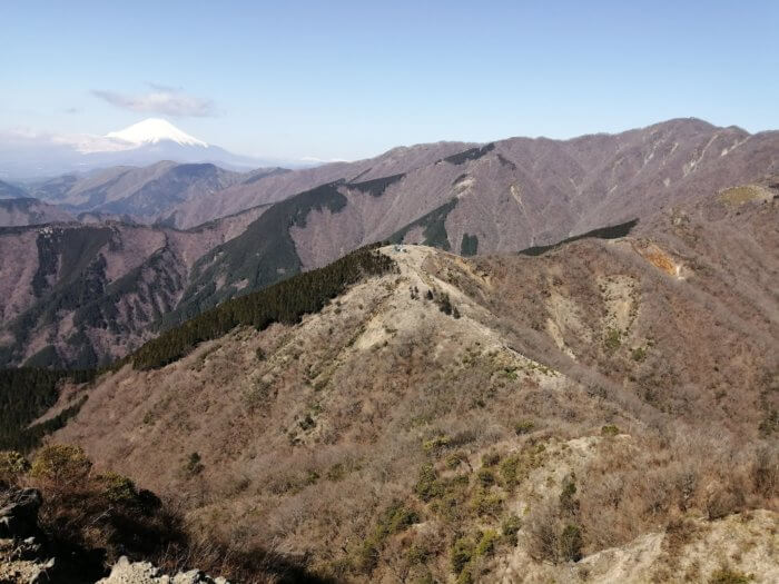 丹沢表尾根の菩提峠~行者岳往復、富士山、駿河湾の眺望