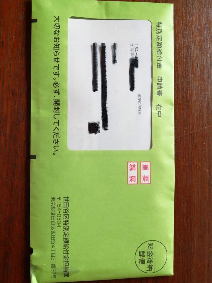 10万円給付オンラインで申請しても、「郵送申請書類」は郵送される