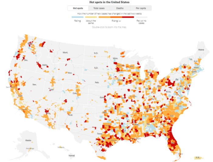 新型コロナ 米国急増化、ニューヨークも警戒値を超える
