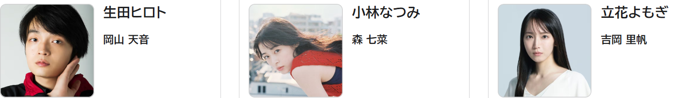 あかり役を演じさせていただきました、光嶌なづなです。芯の強さや友達想いなところ、ときに自信を持てない中でも光る熱い一面。そんなあかりんが大好きで、オーディションで選んでいただいた喜びと責任を胸に大切に演じました。役を通して私自身も力をもらった気がします。温かいスタッフ・キャストの皆さんとていねいに紡いだこの作品が、皆さまの日常にそっと寄り添えれば嬉しいです。ぜひ、ひらやすみのみんなに会いにきてください。