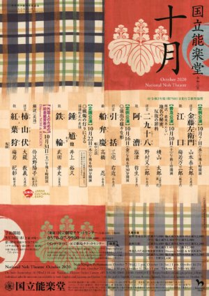 国立能楽堂での能楽講座、2020年10月の能は「江口」、「阿漕」、「船弁慶」、「鉄輪」