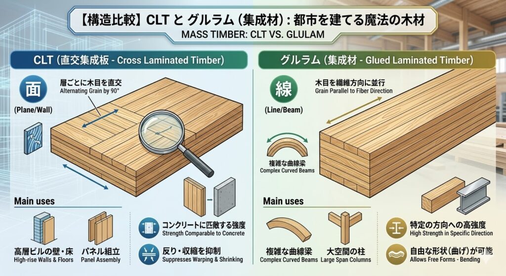 都市を「木」で建てる魔法の材料。CLTとグルラム(集成材)を徹底解説