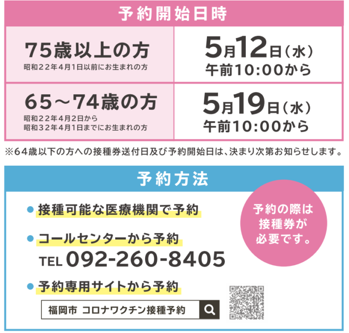 福岡市のワクチン接種状況 福岡市では、3回目接種を受け付けています。 中央ふ頭クルーズセンターは予約なしでも接種できます。 予約サイト 電話予約:福岡市新型コロナワクチン接種コールセンター 電話番号:092-260-8405 受付時間:8時30分~17時30分(... -