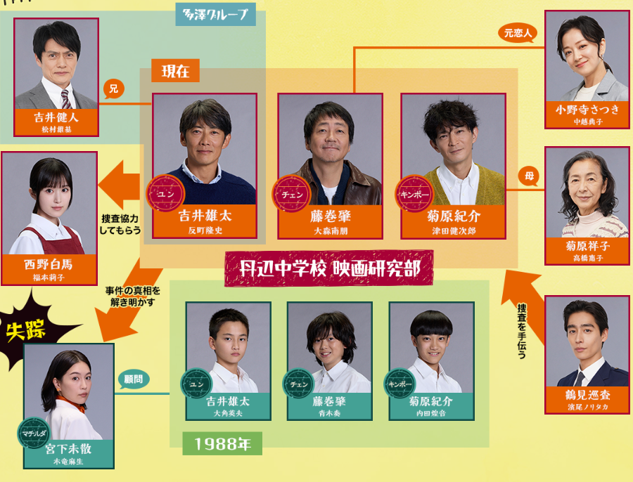 反町隆史、大森南朋、津田健次郎が37年ぶりに再会し、恩師・木竜麻生の失踪事件を追う。