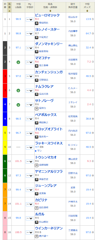 - ピューロマジック(牝3) 斤量差を活かして一発狙える3歳牝馬。良馬場でさらにチャンス拡大!