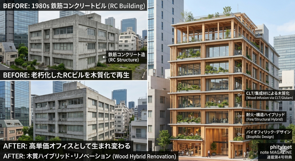 【リノベ編】既存の鉄筋ビルを、木の力で高単価オフィスへ再生する完全ガイド