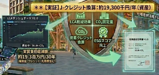 - 炭素クレジット(資産化): 固定されたCO2量をJ-クレジット等へ申請し、売却可能な資産に変える。